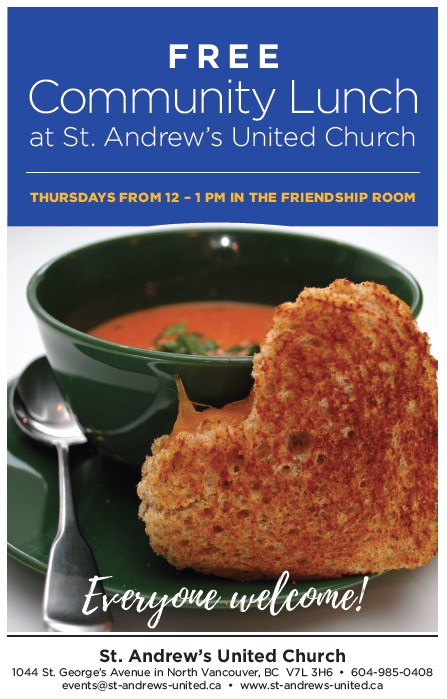 Community Lunches: free community lunch from 12pm to 1pm in the Friendship Room.